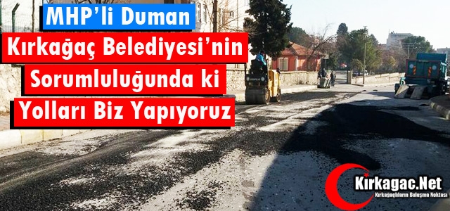 Çünkü Kırkağaç hepmizin" dedi. Duman ayrıca asfalt çalışmalarına devam ettiklerini, Gelenbe girişinide asfaltladıklarını belirtti.