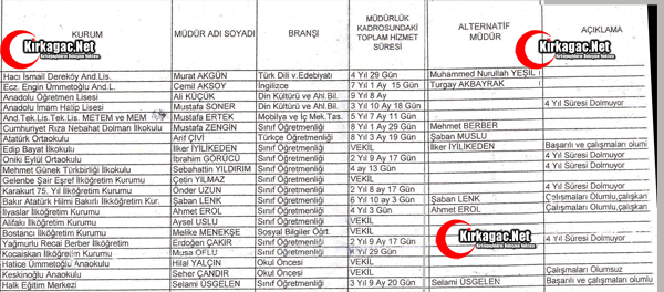 Ele geçirdiğimiz belgede de görüleceği gibi hazırlanan listede sadece 1 okul müdürünün görevinde farklılık olmuş, diğerleri hazırlanan liste doğrultusunda puanlanmıştır. Söz konusu belgeyi de siz saygıdeğer kamuoyu ile paylaşmakta hiçbir sakınca görmüyoruz. Kamuoyuna saygıyla duyurulur.