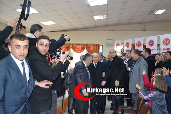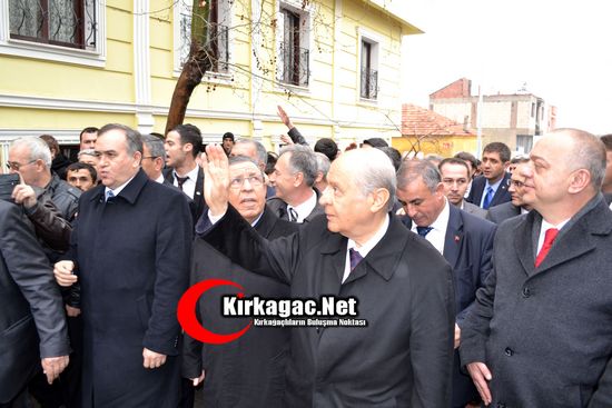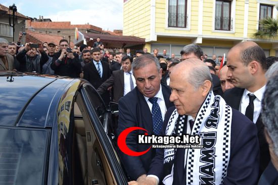 Ordu evi önünde karşılanan Bahçeli, binlerce Kırkağaç'lının eşliğinde Yasemin Düğün Salonuna gitti.