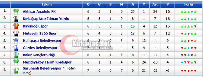 7.Hafta sonunda puan tablosu şöyle oluştu.