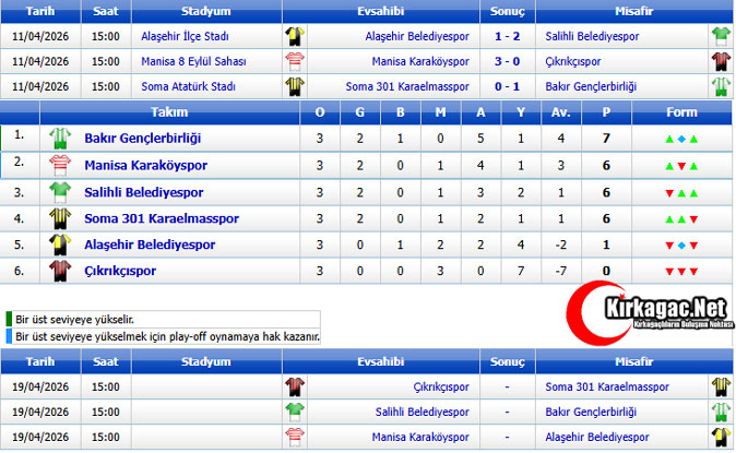 Haftanın diğer maçlarında ise Salihli Belediyespor deplasmanda Alaşehir Belediyespor’u 2-1, Karaköyspor ise sahasında Çıkrıkspor’u 3-0 mağlup etti.