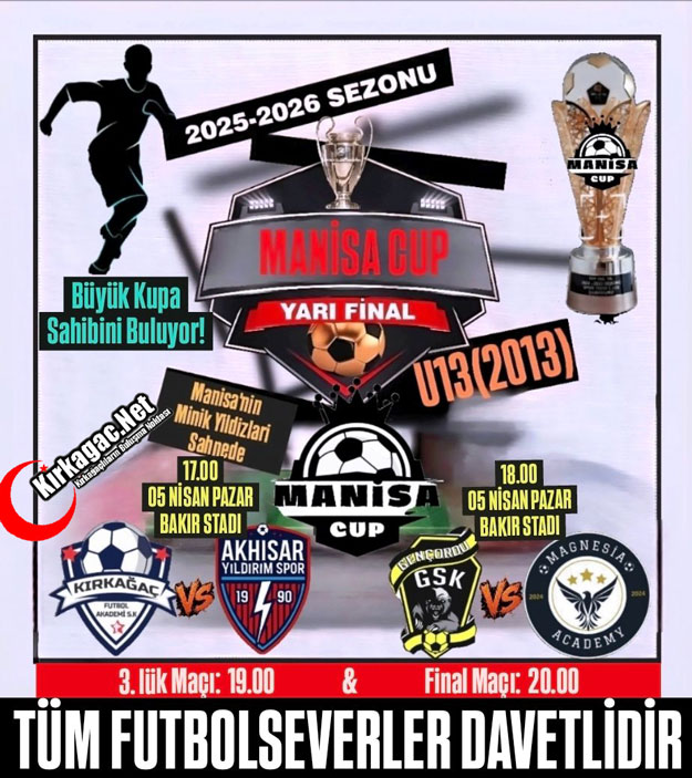Kırkağaç Akademi U-13 futbol takımının ilçemizi temsil edeceği bu büyük organizasyonda, ilk düdük Pazar günü saat 17.00’de çalacak.