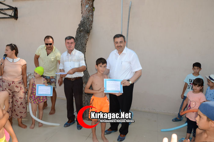 Kırkağaç'ın halka açık tek yarı olimpik yüzme havuzu olan ve yapılan denetimlerde Ege Bölgesi'nin en temiz ve hijyenik havuzlarından biri seçilen Kardeşler Yüzme Havuzunda çocuklar belge töreninde doyasıya eğlendiler.