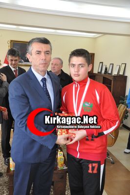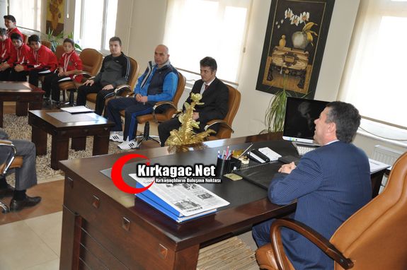 Kırkağaç Kaymakamlığı makamında düzenlenen ziyarette, şampiyon takım oyuncularının yanı sıra, Kırkağaç İlçe Milli Eğitim Müdürü Adem Yalçınkaya, Atatürk Orta Okulu Müdürü Şaban Muslu, Müdür Yardımcısı Durmuş Ateş, Beden Eğitimi Öğretmenleri Hüseyin Çetin ve Yunus Emre Küçük ile Okul Aile Birliği Başkanı Ahmet Kumkapı yer aldı.