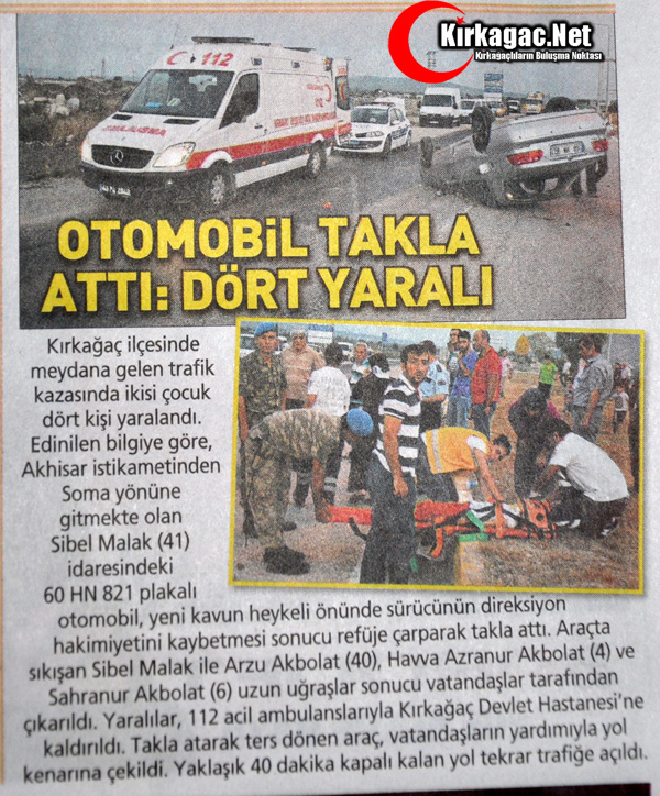 ve OTOMOBİL TAKLA ATTI 4 YARALI"